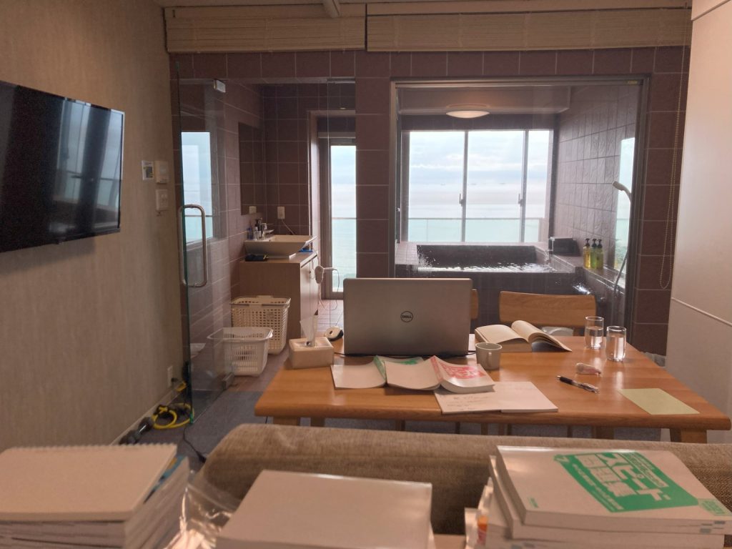 喜びと同時に「困っている企業は他にもあるのでは?これまで仲間とともに奮闘してきたことを基盤に、様々な企業の課題に向き合って役に立ちたい。その様な活動を通じて自らも成長したい。」という想いが高まり、将来について再び考えた結果、中小企業診断士になることを決意。資格取得後[写真:取得に向け有給勉強合宿]、システムベンダーへ。業務コンサルチームで小売業やサービス業の省力化に向けたシステム開発の提案・ソリューション企画プロジェクトに参画。これまで外(発注者側)から見ていたシステムベンダーの実際の動きや考え方を学ぶとともに、支援者としての立場を経験。